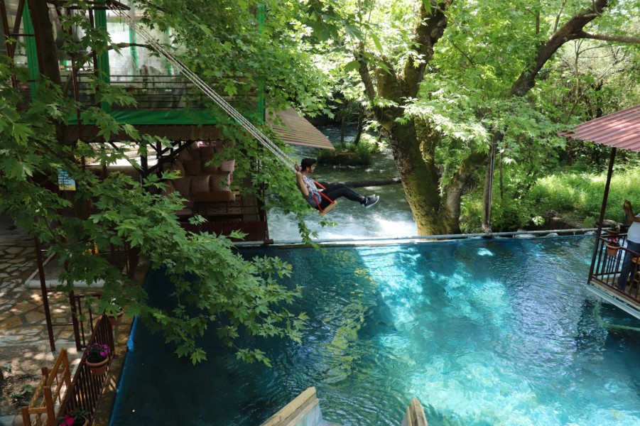 Our restaurant in Yuvarlakçay Topgözü region is a resting place worth seeing with its water-based mansions, oriental angels, natural swimming pools and a restored historical water mill.